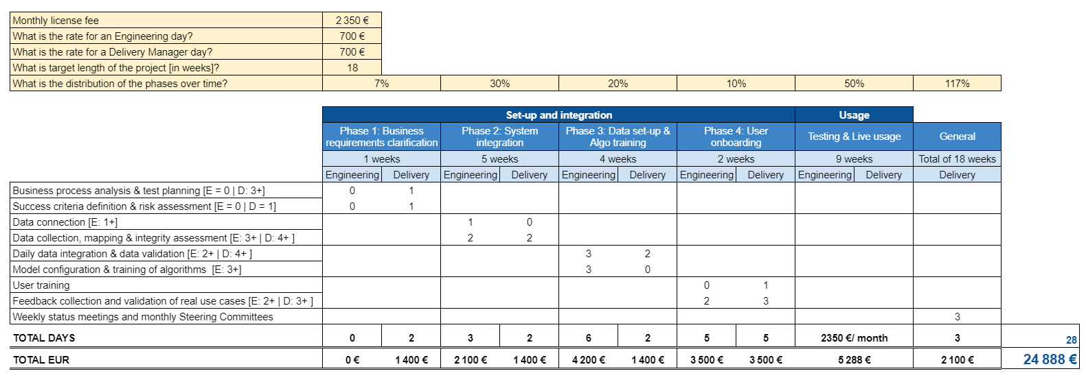 - Validate the scope and price before mid July